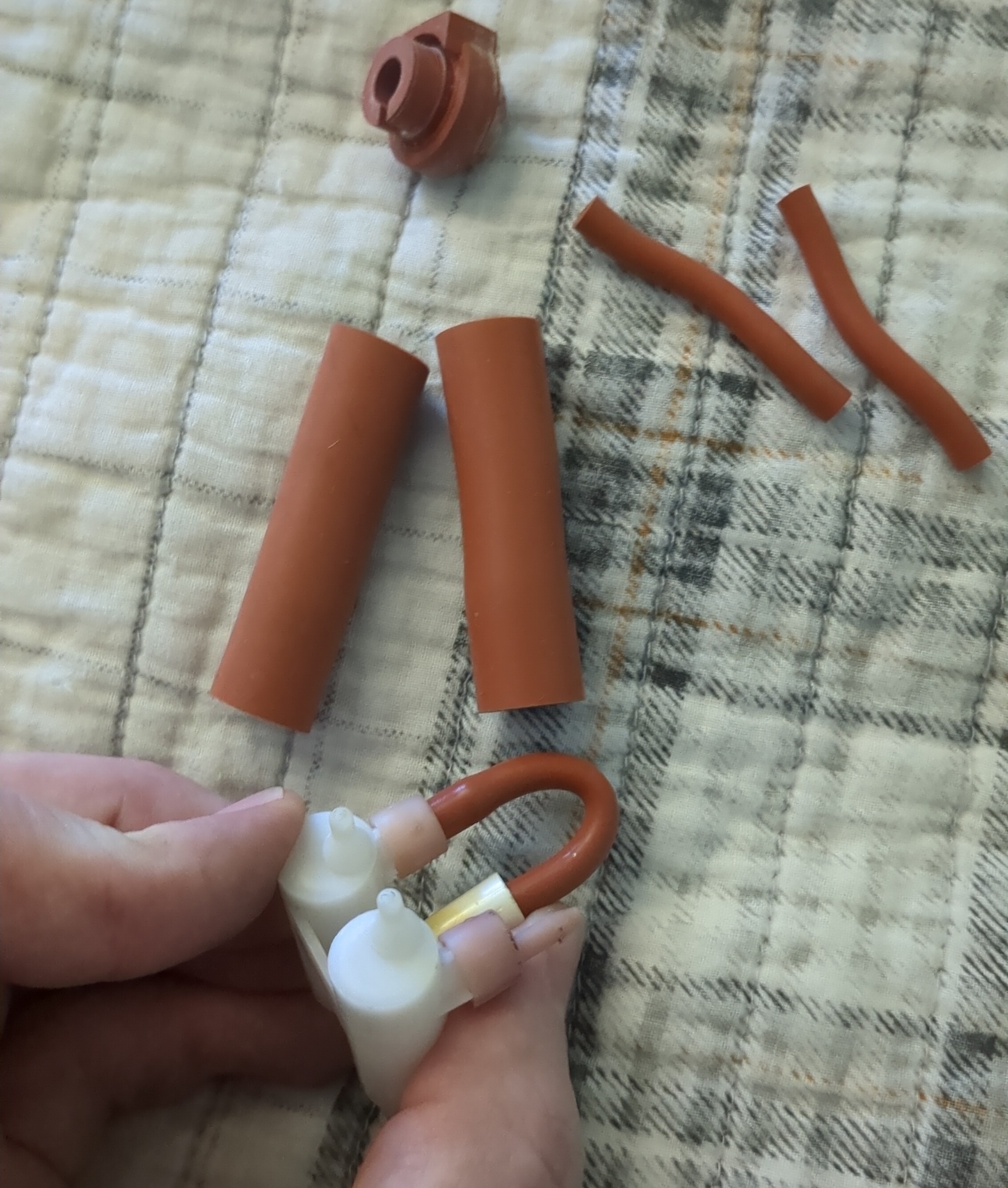 I’m almost certain, what you are looking at, is actually silicone tubing. The odor of RTV sealant is from the acid, which is part of the curing mechanism, that makes it “room temperature vulcanising”. Silicone tubing shouldn’t really smell of anything significant.