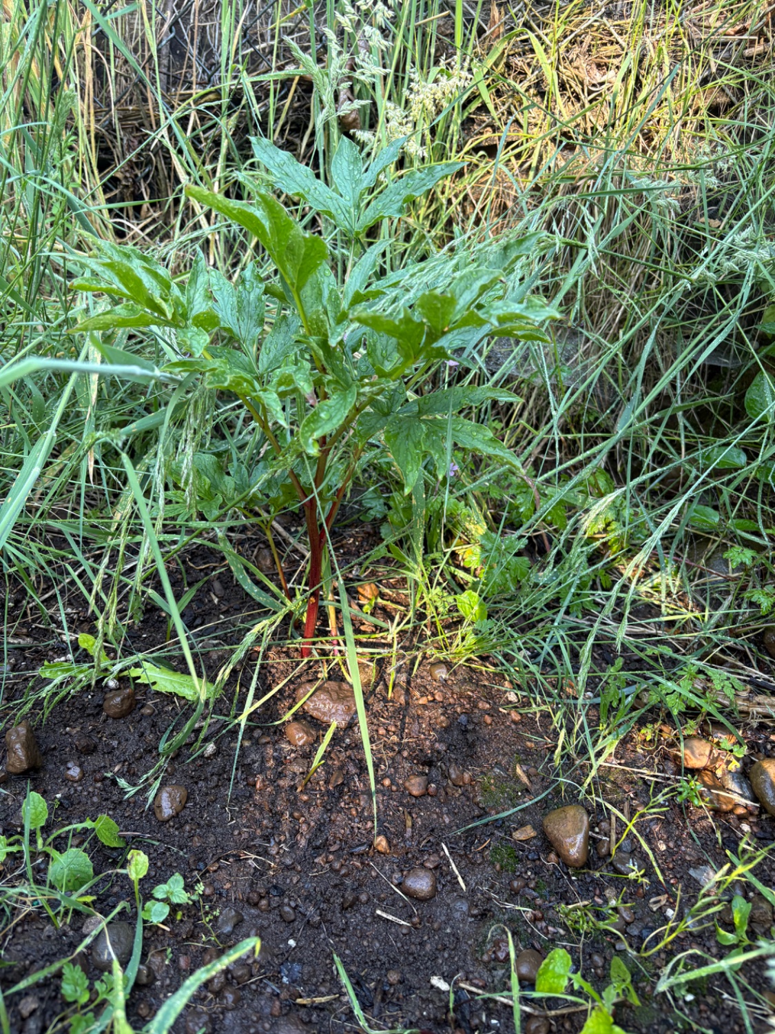 Yes! She’s doing great! Typically the first year (or couple years) you’ll only get 1-2 stems from the ground, but it will increase over the years. One suggestion would be to remove some of the grass/etc in the vicinity - peonies like their space and will need the water/nutrients to thrive. For reference, typical farm spacing is recommended 4ft apart. Another tip is to disbud any buds the first two years. Just pop them off as soon as you see them form. This will help your new peonies put energy into leaves and roots for a healthier plant. You can then allow them to bloom in year 3.