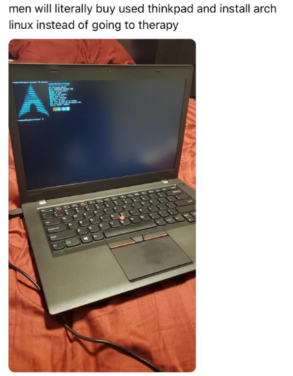 I think their joke was that Thinkpad Arch users (at least online) have a strong correlation with trans women