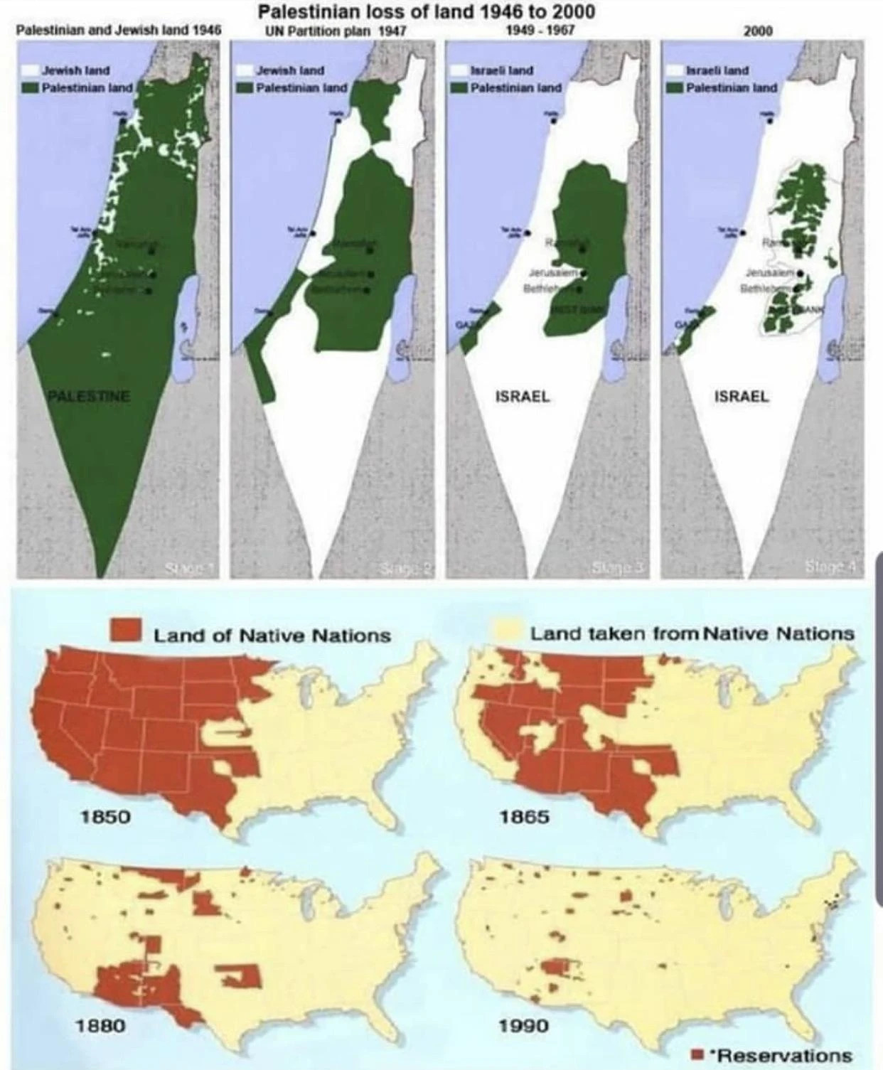 I get the point but these are two very different circumstances. Israelites and Palestinians are both native to the area. Their ancestors were Canaans and Philistines. The ownership of land is the result of western powers deciding how best to divide and conquer.