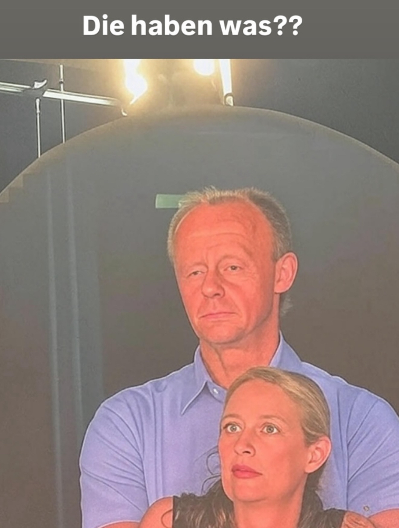 Die anderen Kommentare verwirren mich :D ist das nicht einfach ein Fotoladen von Merz und Weidel??