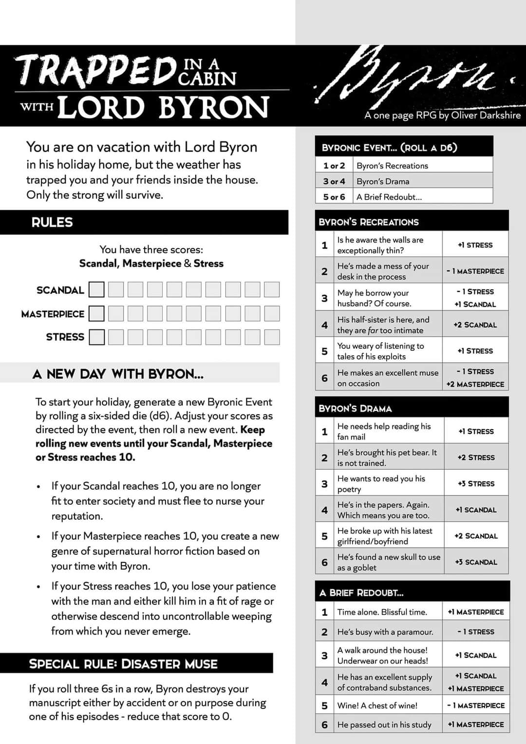 Trapped in a Cabin with Lord Byron - A One Page RPG