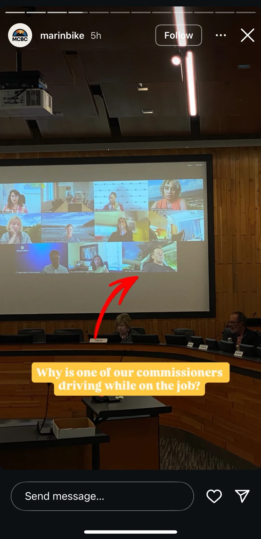 Because not only is he not giving the meeting the full attention that it deserves but also because he’s driving distracted and putting everyone on the road (like these cyclists) in danger.