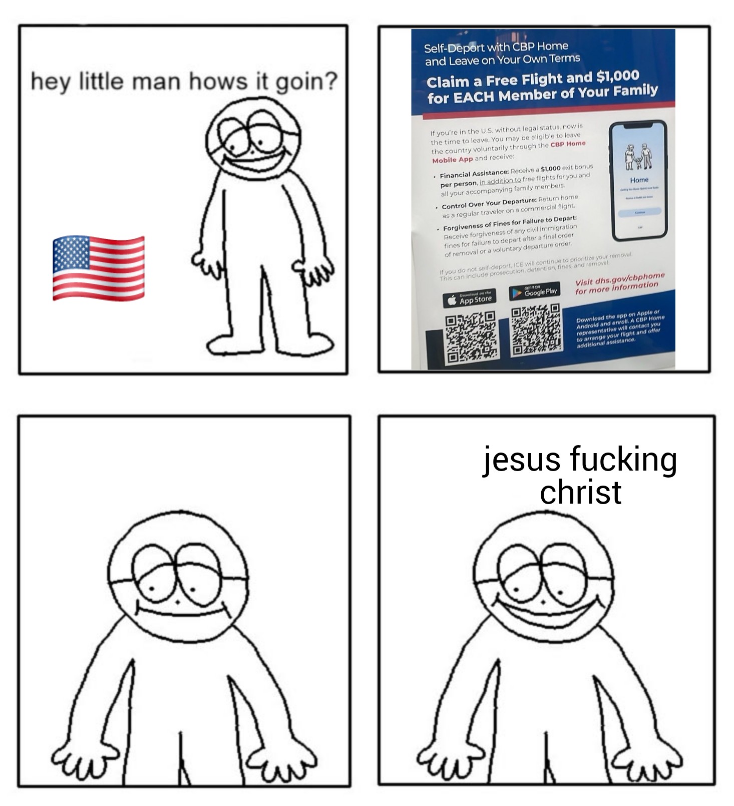 minus-squarelischni_tschelowek@discuss.tchncs.delinkfedilinkarrow-up10·2 months agoDidn’t i see something like that in the Cheech & Chong movie from the seventies? The deported themselves for a birthday party, because the plane tickets were to pricey…