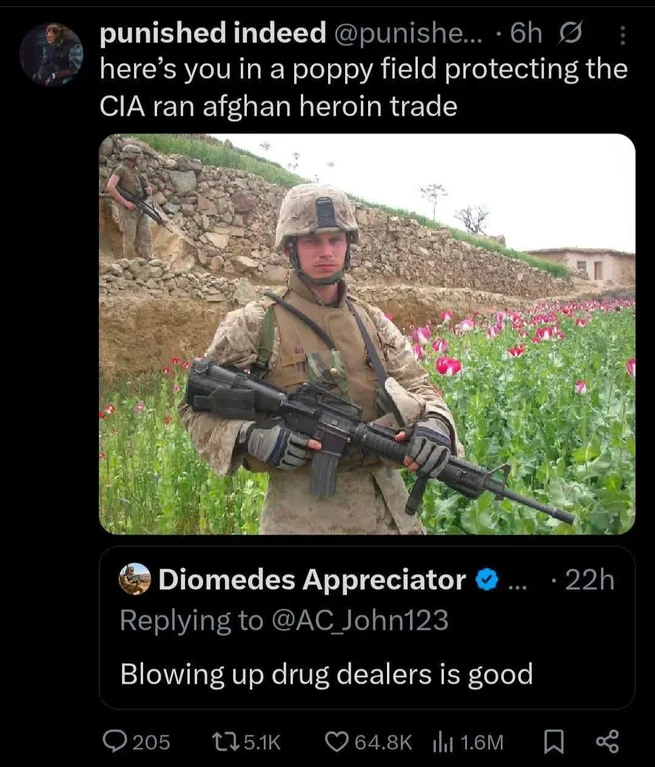 If he served in a different role, he was simply enabling the deployment that was helping defend the poppy trade.