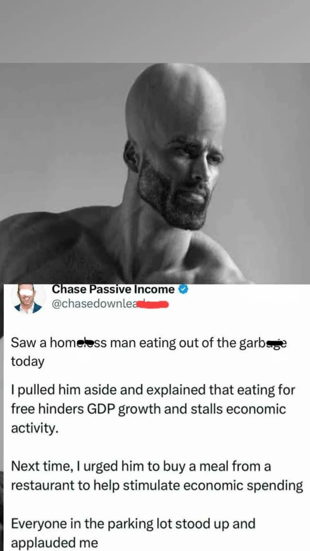 Every person eating out of a dumpster is a failure of the system. How has our economy not incentivized creating a method yet to maximize the wealth we could be extracting from these people?? We could slap a simple coin op slot onto those dumpsters and operate them like an unregulated vending machine. We could come up with a subscription model to allow monthly access to eating out of them. We could even figure out some form of alternative decentralized money system to get around FTC regulations and pesky labor laws on how we pay and receive the money from these homeless people. Capitalism is the greatest economic system ever created and we need to find a place in it for the homeless to contribute their fair share to the shareholders.