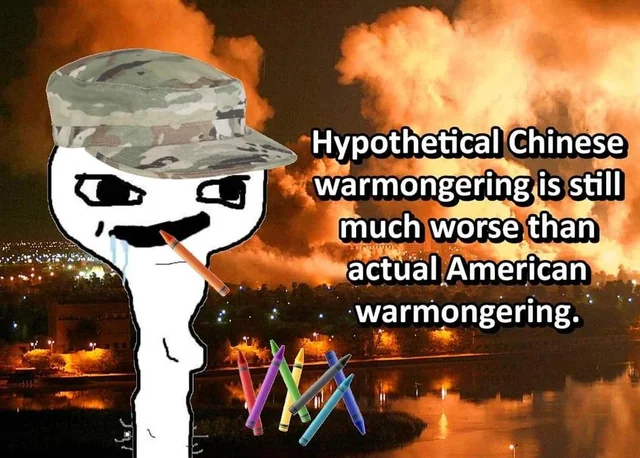 “On the one hand, America committed massive war crimes, killing and maiming thousands. On the other hand, China loaned us money. These are equally bad.”