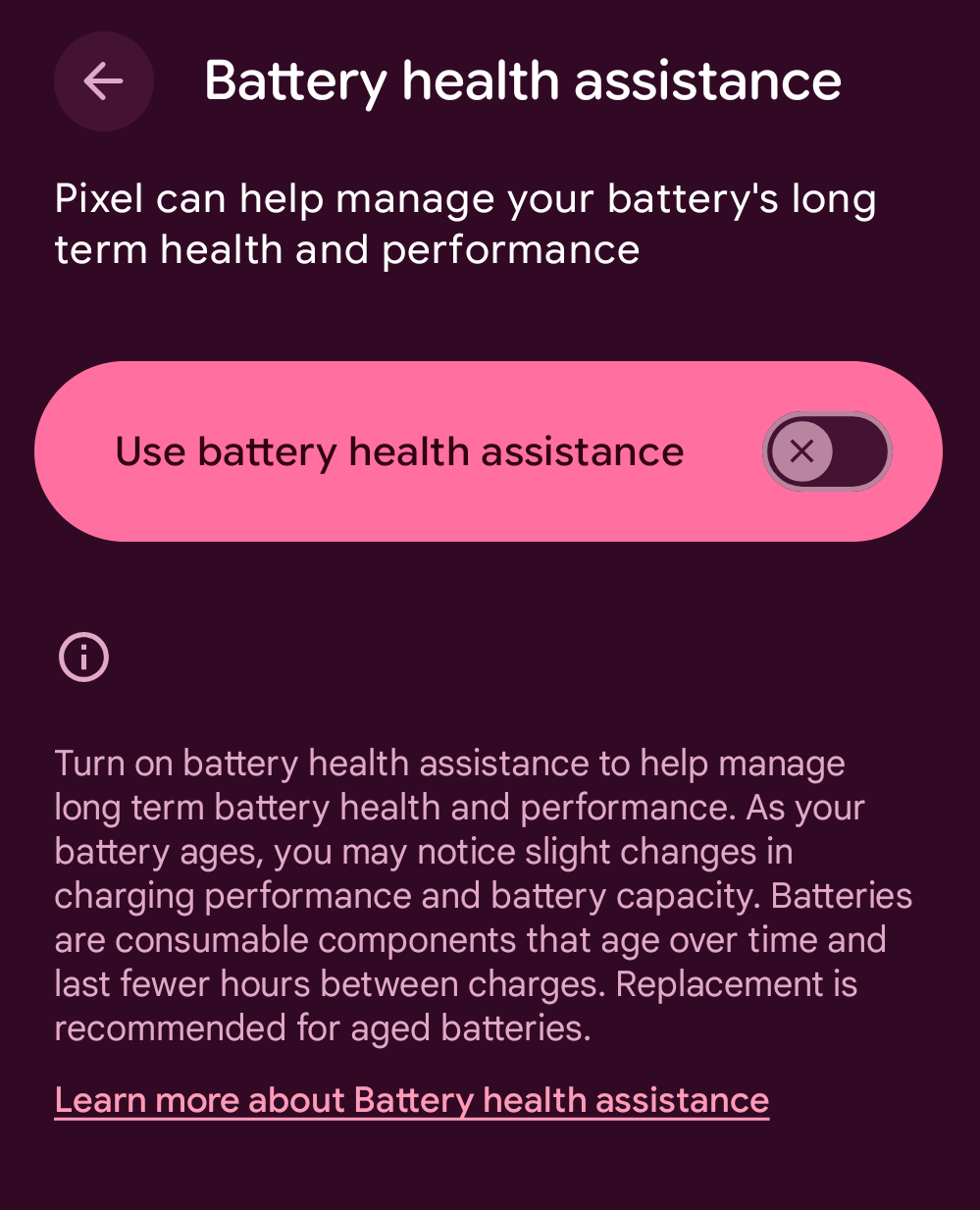 Wait, did Android 16 QPR 1 remove the charging limit for newer Pixels? My 7a has both the Battery health assistance option and the original optimization modes (off, adaptive charging and 80%).
