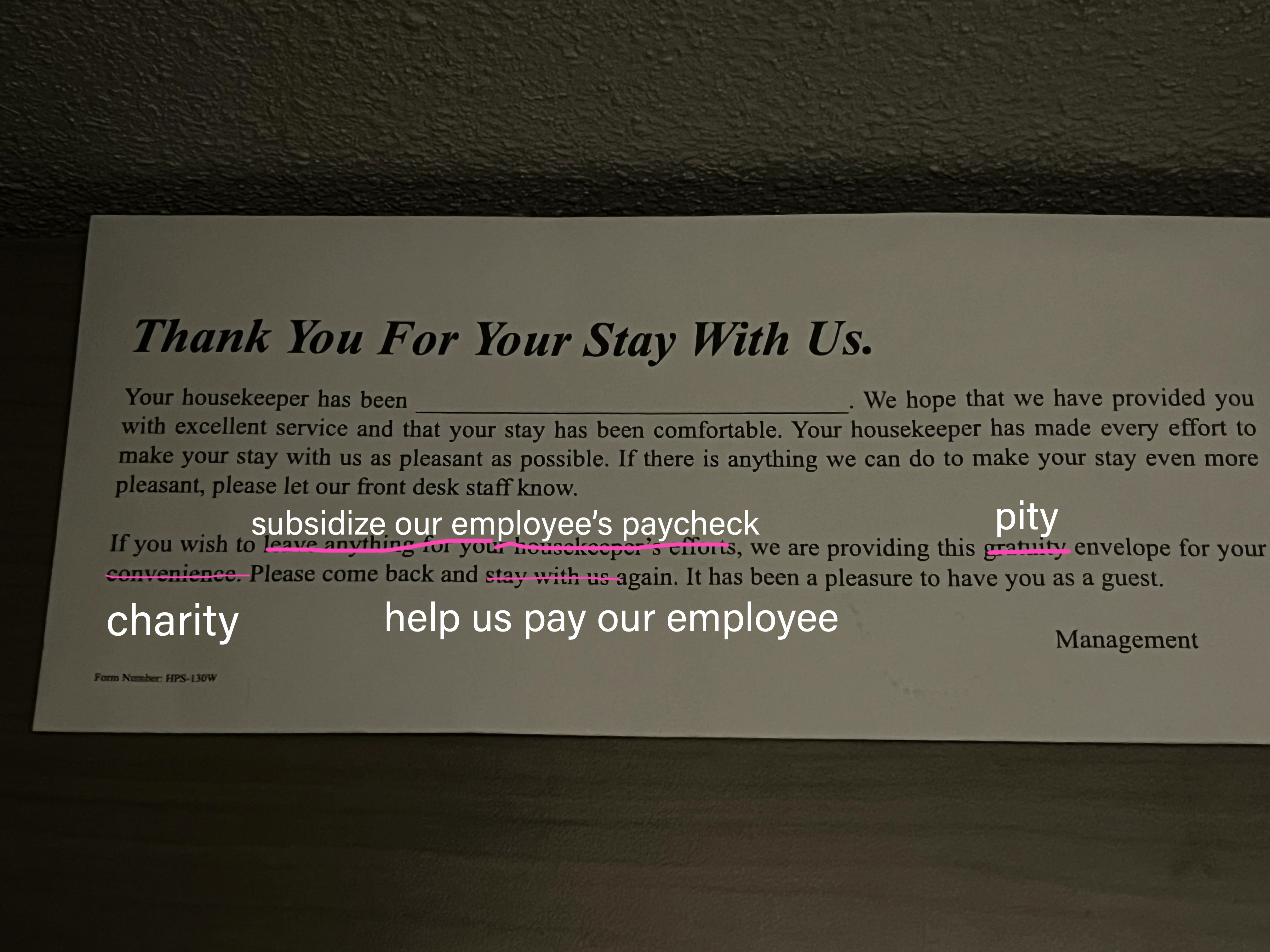 Thanks for sharing. Honestly it’s been nagging at me because I’m coincidentally on a business trip. It occurred to me whether I should tip the gas station attendant (or whatever it’s called, the person who refuels your car in some states). He didn’t seem to expect it and I didn’t, but I’ve begun worrying about whom I should be tipping.
