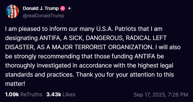 Trump stating he is going to designate “ANTIFA” a terrorist organization