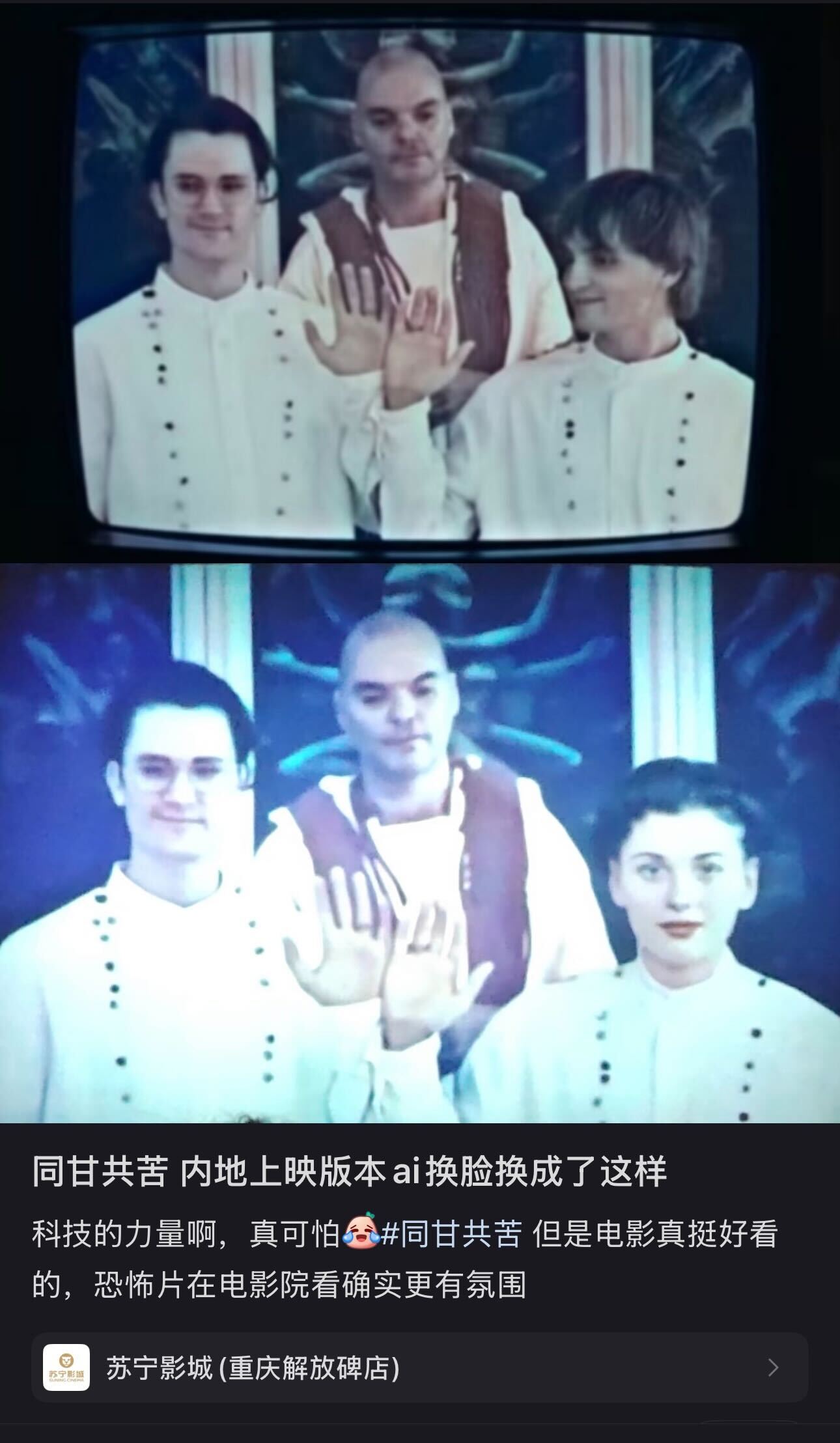 The ridiculous part is that they thought it would be a good idea to use AI tool to alter the original content on screen to get around this issue and then show it on cinema. Read the Zhihu thread, usually it’s just cutting a few scenes here and there. This is something new, and ridiculous lol.