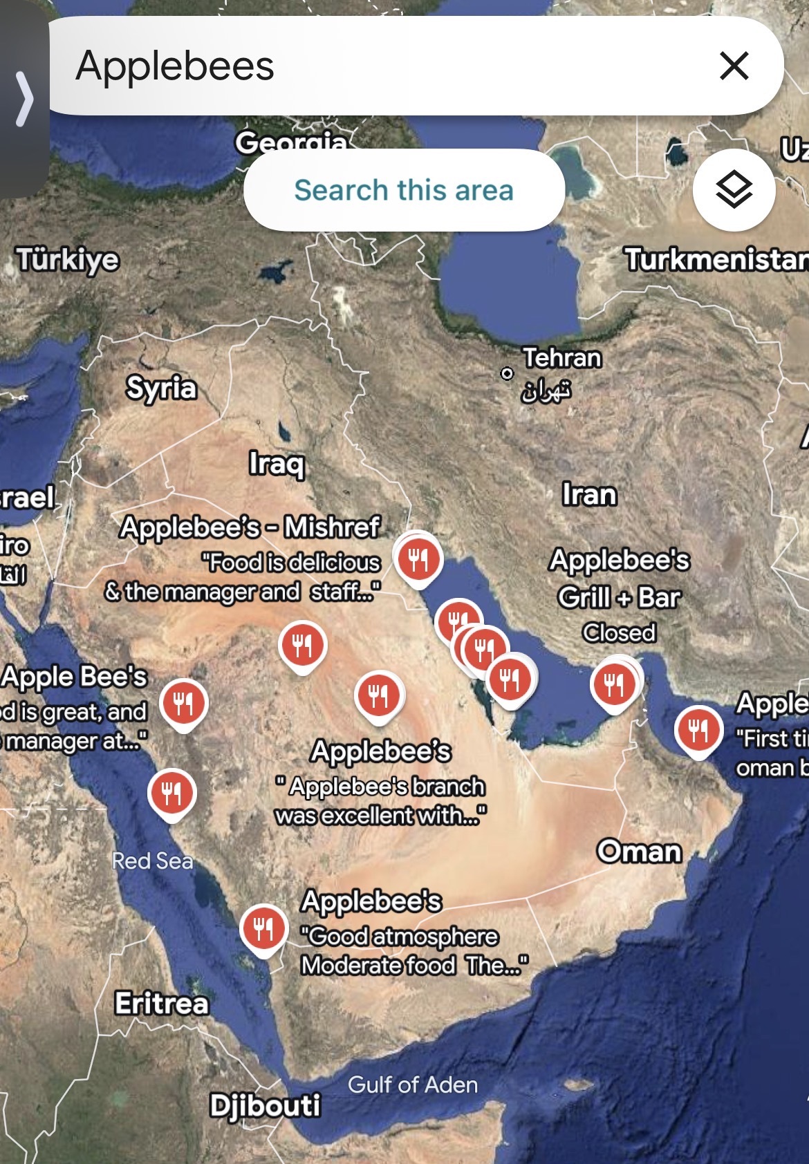 Lebanon had an Applebees but it closed a decade ago because it was dogshit. Funnily enough it was also next to a US embassy office or something and taking pics nearby would get you questioned.