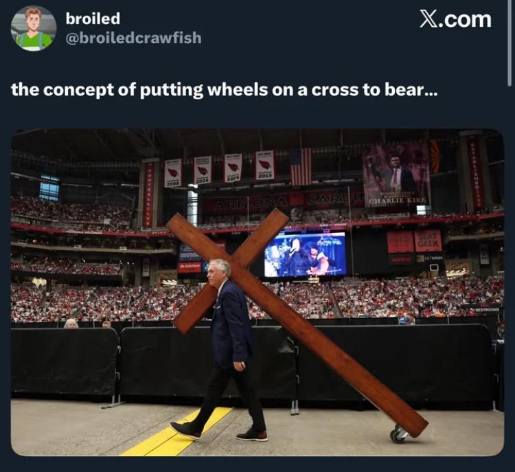 It’s a perfect metaphor for the performative Christianity they love: all show, no effort