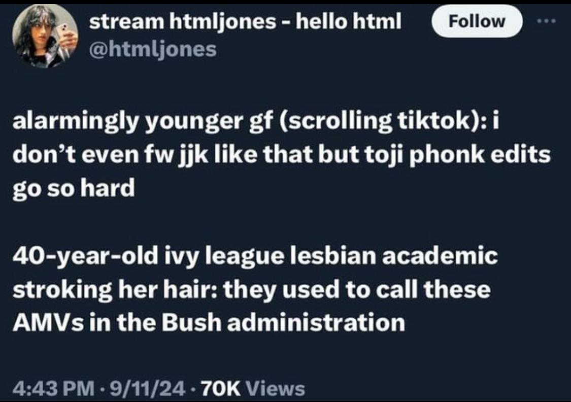 It hasn’t happened to me yet. I literally edited AMVs of Evangelion to System of a Down in iMovie on a gen1 iMac back in high school, but I can still understand the kid’s slang alright. I don’t think that everyone become a curmudgeonly generation hater as they age.