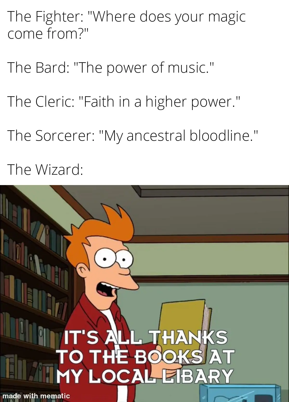 “Also, thousands of gold worth of ink and reagents. Basically you have to be old money rich to be a wizard, or appropriate a bunch of riches from dudes who own way too large basements.”