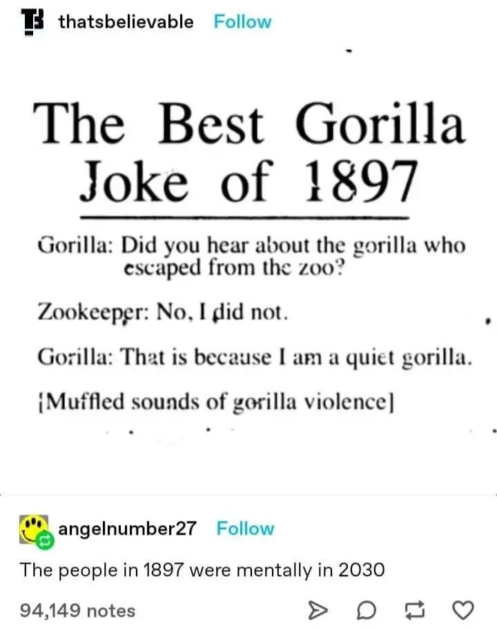 I’m pretty sure the gorilla jokes thing is fake though