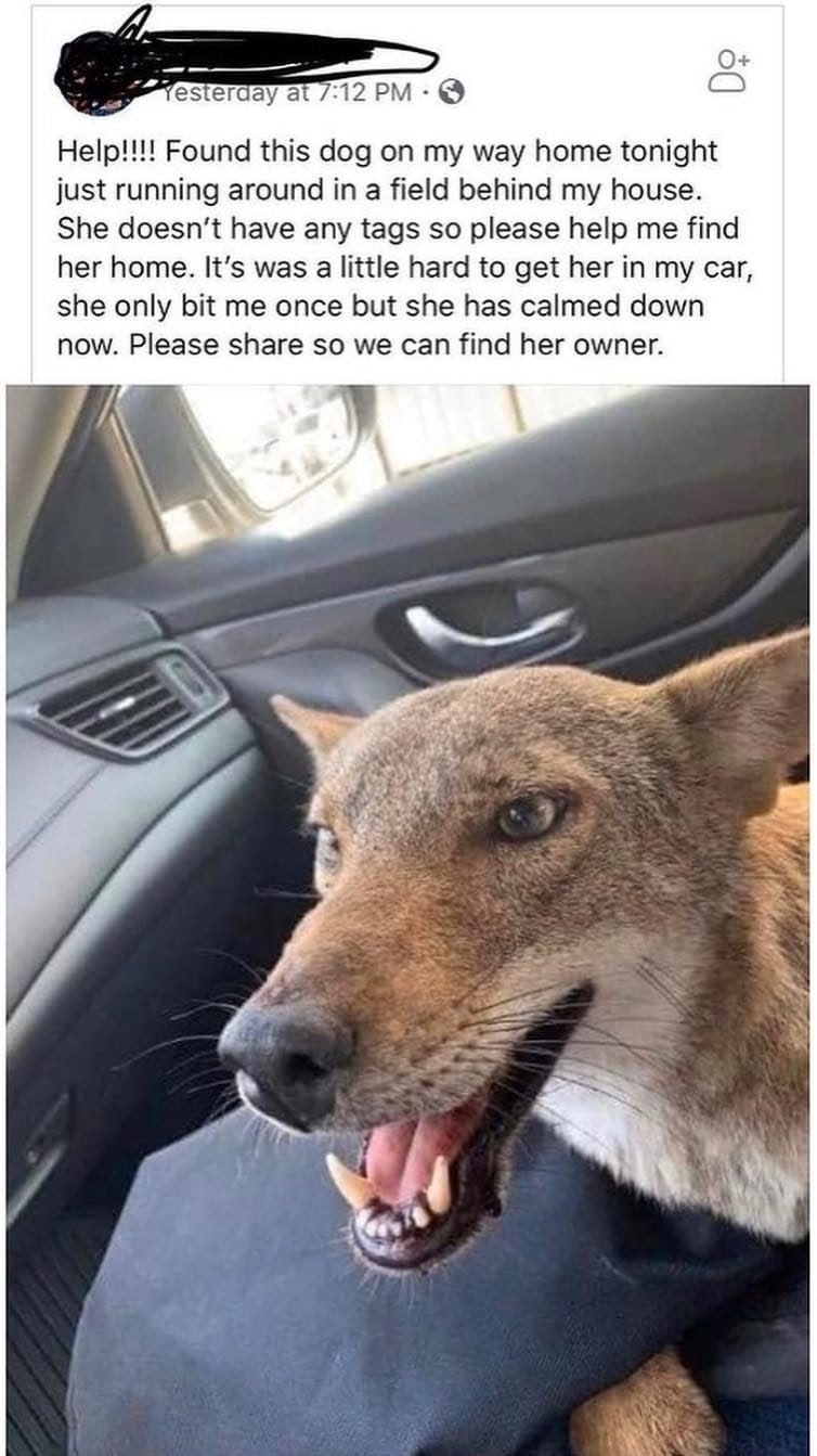 This is what I would expect from an alive and anoyed coyote riding shotgun