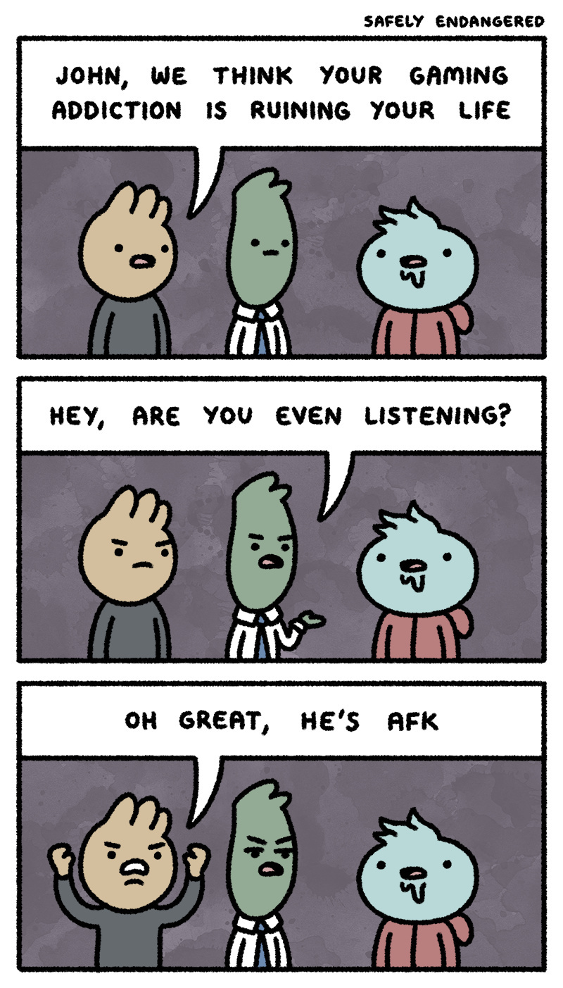 Oh I know what it’s supposed to be, but can’t help but see something else. I bet if the mouth was dark with a tongue like in the other panels the illusion wouldn’t be so persistent. The line under the mouth is very similar to the mouth when closed so that probably doesn’t help either