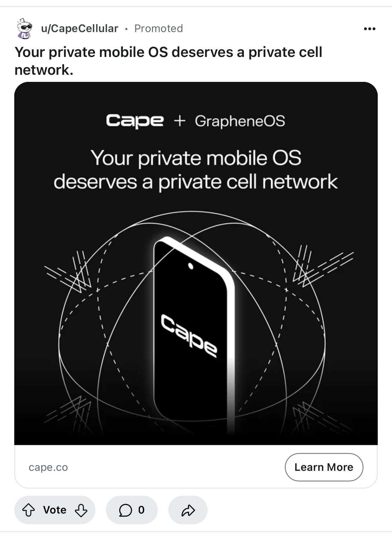 But if we think about the practical application – who needs a honeypot for cell phone services? Carriers already collect so much data (location, telemetry, payment, government-issued ID, etc) and sell it willingly to whoever wants to buy. How could Cape be any worse? lol. If they adhere to any of their stated policies it seems like a plus, no?