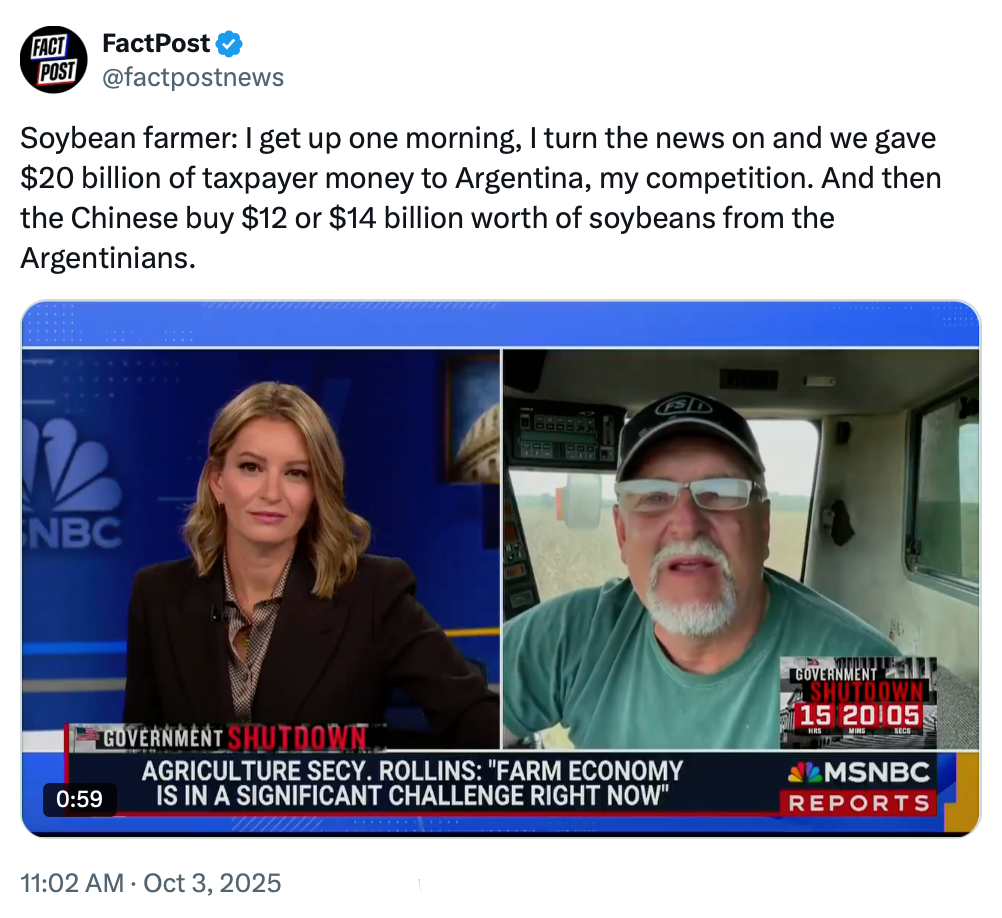 Especially soybean farmers. That’s not, smol bean (no pun intended) family farm selling their wide variety of veggies at the local farmer’s market. That’s, acres upon acres of monoculture for byproducts owned by what are effectively landlords.