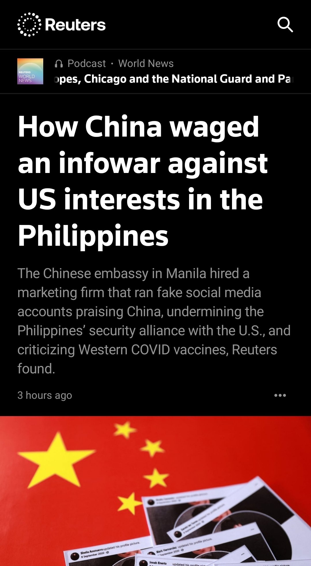 The U.S. military launched a clandestine program amid the COVID crisis to discredit China’s Sinovac inoculation – payback for Beijing’s efforts to blame Washington for the pandemic. One target: the Filipino public. Health experts say the gambit was indefensible and put innocent lives at risk.