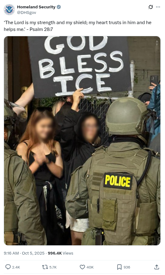 arrow-up1378arrow-down1imageThis is a real post from the official DHS account on Xlemmy.worldLucifuge Rofocale@lemmy.world to Lemmy Shitpost@lemmy.world · 2 days agomessage-square53fedilinkfile-text