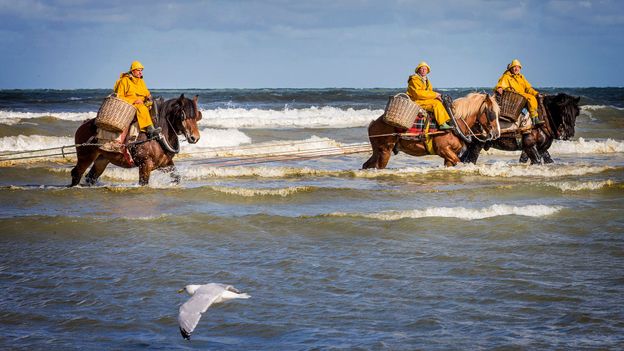 Fishing for shrimp on horseback was once practiced along the North Sea from Germany to England. Today, only 17 fishermen remain, and the world’s first women have joined their ranks.