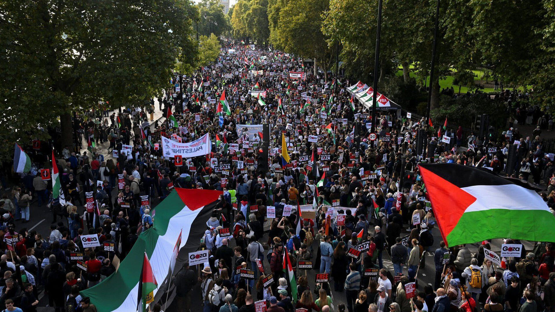 9 October 2025 19:34 BSTHundreds of thousands of pro-Palestine demonstrators took to the streets of central London on Saturday, calling for lasting peace in Gaza, a day after the ceasefire took effect.