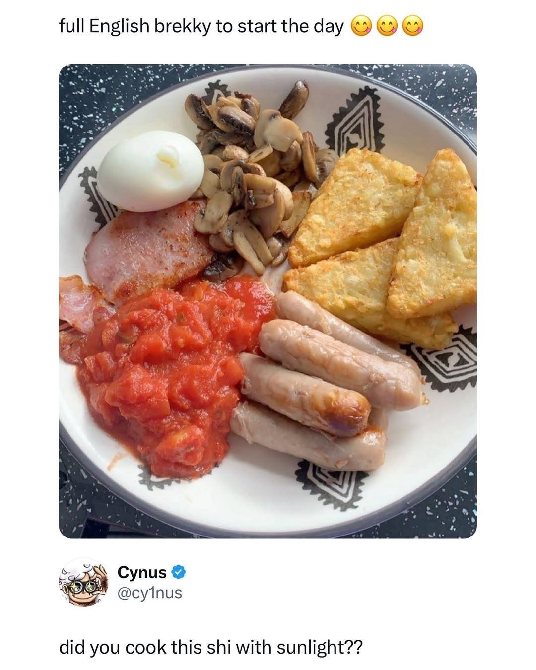 And you are very welcome to enjoy your specific version of a full english. 😀