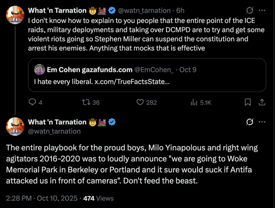 The fact that Texas has already had three attempts to murder ICE goons is interesting, considering the army’s never going there, because red states can’t be allowed to see the embarrassing idiocy of putting soldiers on the streets for - show.