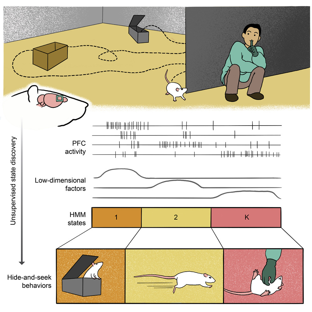 Unsupervised discovery of behaviorally relevant brain states in rats playing hide-and-seek