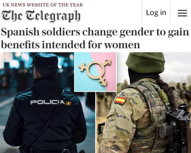 Oh my god it’s real. https://www.telegraph.co.uk/news/2024/03/05/spanish-soldiers-change-gender-benefits-for-women/
