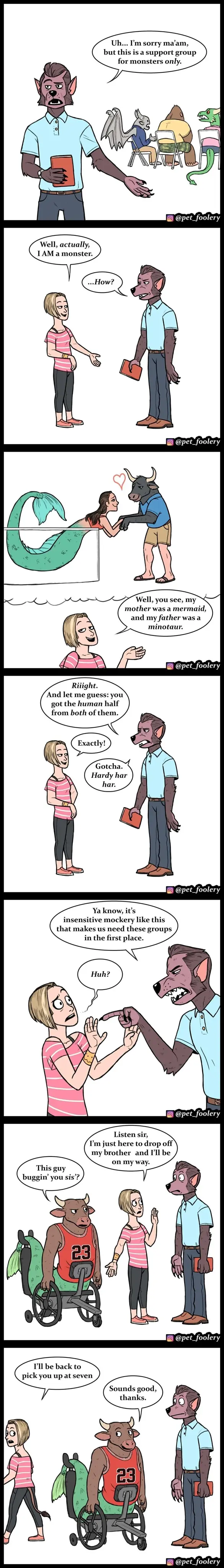 I love that she has a tail in the last panel. Call it the “stinger” of the joke. (Sorry don’t hate me)