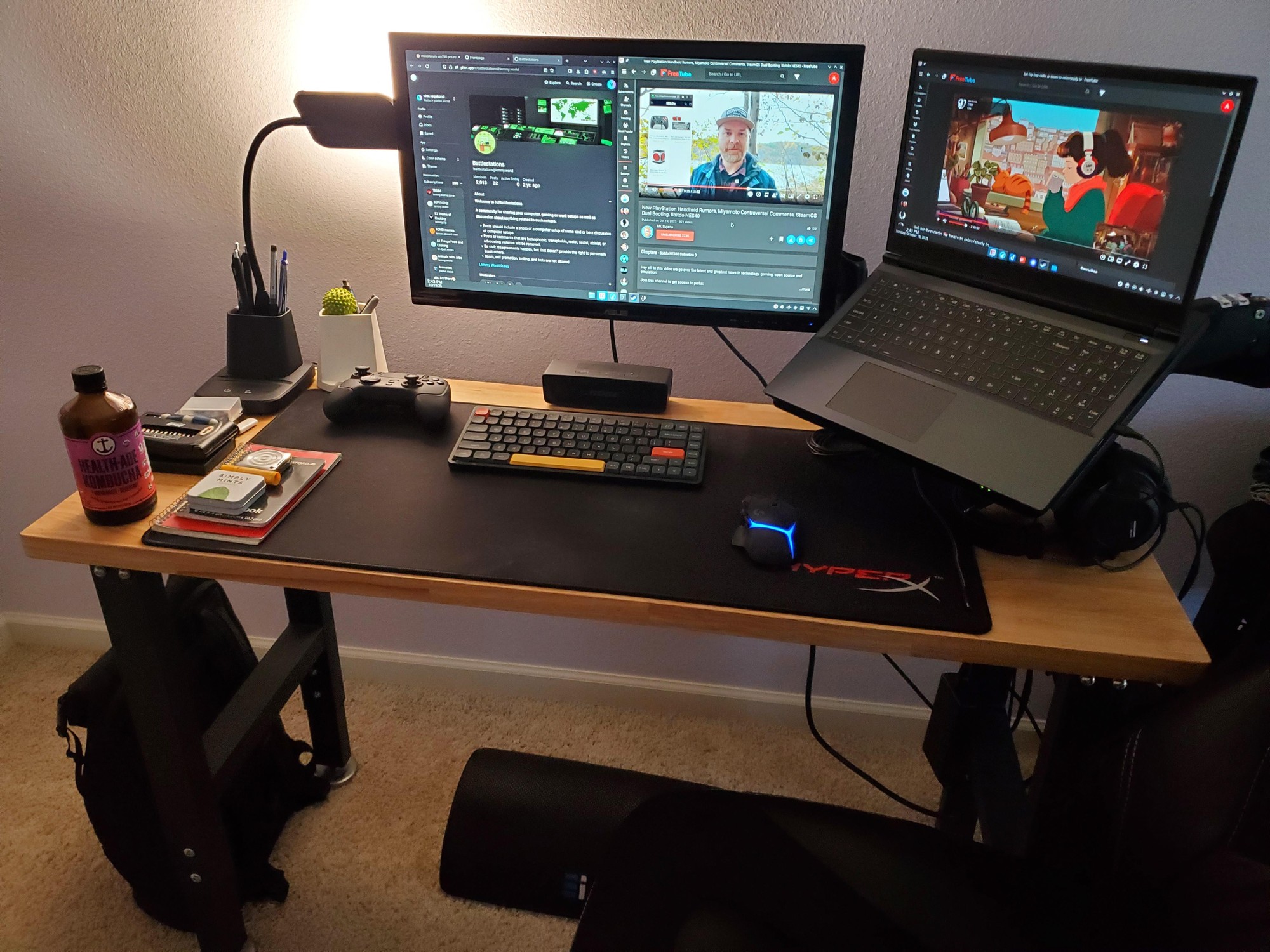 That option did occur to me, but I’m not entirely sure that my space would allow for it… Also, even though my laptop is pretty powerful, I’m not sure how taxing that would be on it. My laptop’s screen is capable of a high refresh rate, and ideally I would want to still be able to take advantage of that.