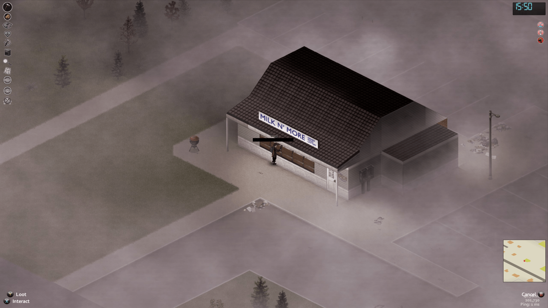 Today’s game is Project Zomboid. Me and two other friends decided to start a new save and just play together for a bit. We ended up holing up in a Milk Store. I broke apart tables in the nearby houses for supplies to barricade the windows and my friend put up curtains. Overall? It cleaned up very nicely.