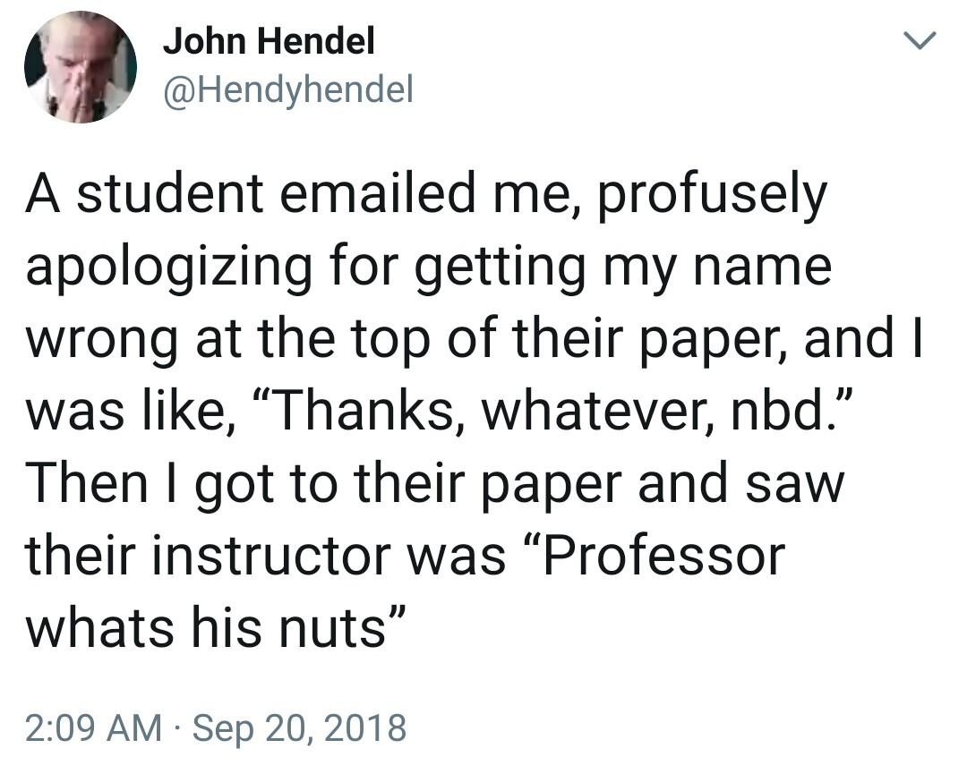 If I were the prof, I’d own it and every class there after I would have “Professor whats his n*ts” (because somebody would get offended) on the board. I wouldn’t call the student out at all. And I wouldn’t say anything about it.