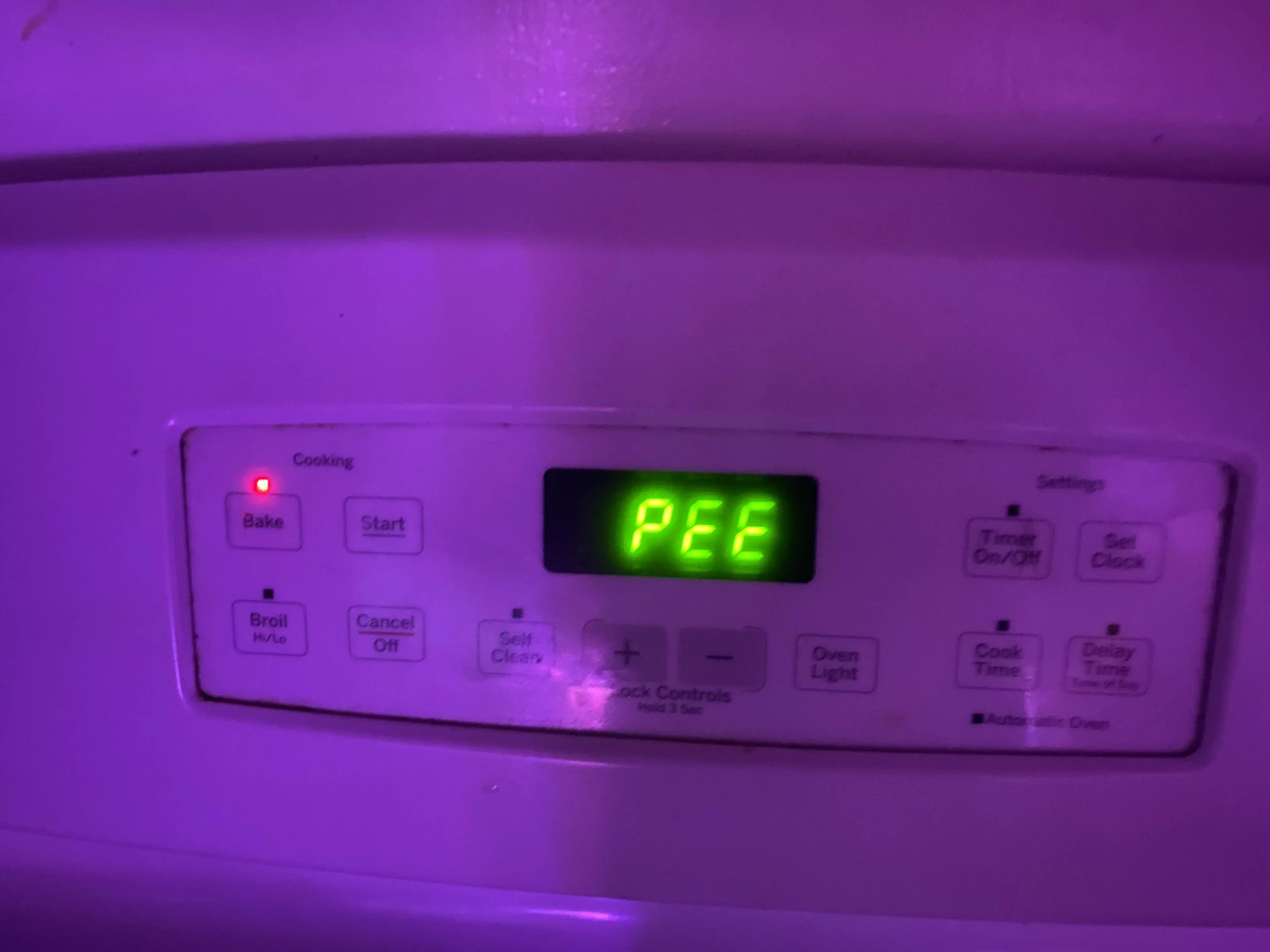 Not to be that guy, but having had to repair ovens with these GE control boards on and off, what that display is saying (as the oven is on) is “PRE” for pre-heating.