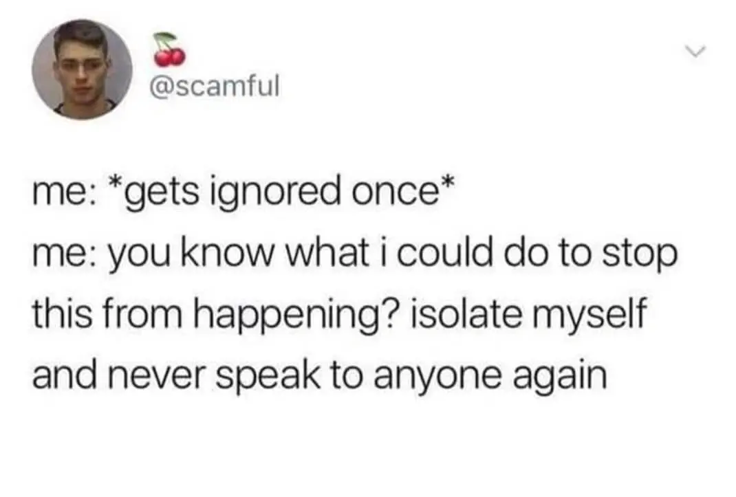 Basically me. Oh, no one will listen long enough for me to finish what I’m trying to say? Best to not speak to anyone, then.
