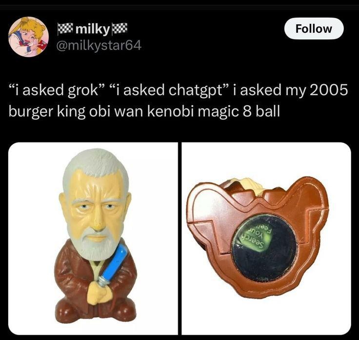 Dissing more on AI slop than this novelty Obi Wan toy, of course. Questionably designed, as it is.