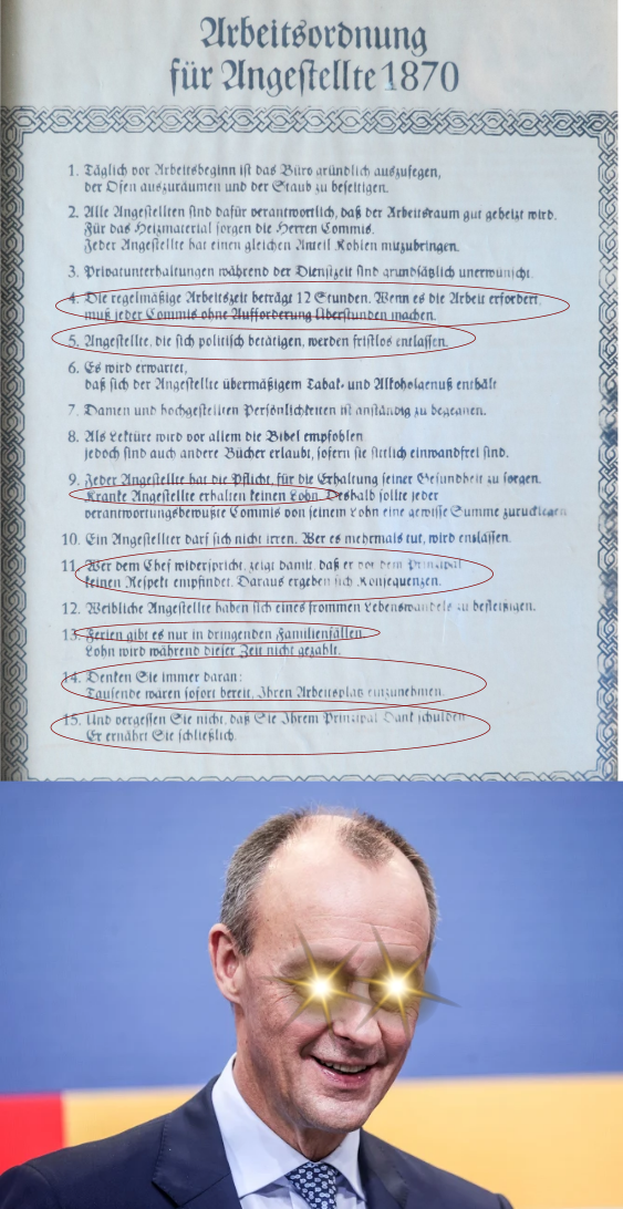 - Angestellte, die sich politisch betätigen, werden fristlos entlassen.