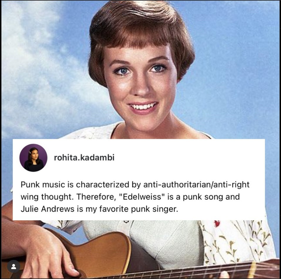 Julie Andrews didn’t sing Edelweiss, that was Captain Von Trapp’s song. He’s the Punk you should admire.
