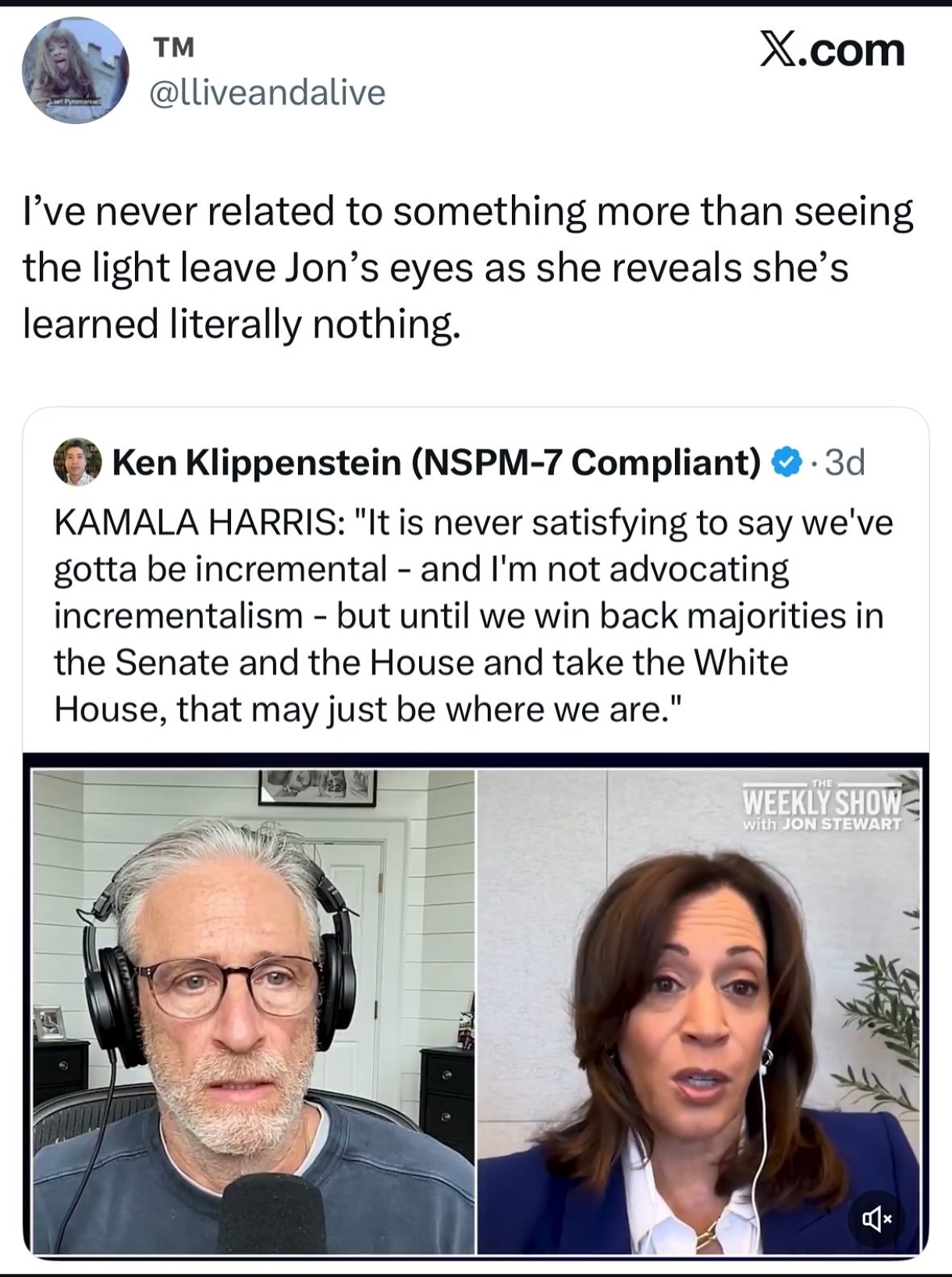 Love to just question-beg that incrementalism is how elections are won when she lost her election on an incrementalist platform, but it doesn’t count because Biden stayed in the election for too long and that in no manner reflects any further problem with the party.