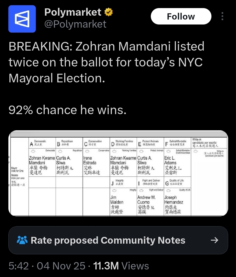 So if Zohran got 5 votes as the Democrat nominee and 3 from the WFP he would get 8 votes in total.