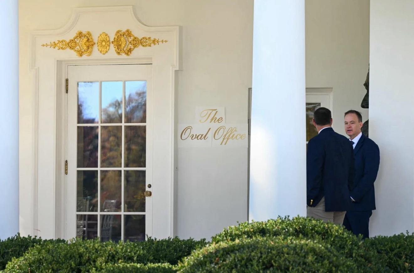 The sign, which appeared to be a temporary placeholder to show where to add the planned lettering, used a cursive font that strongly resembles the typeface used in the logo of his Mar-a-Lago club.