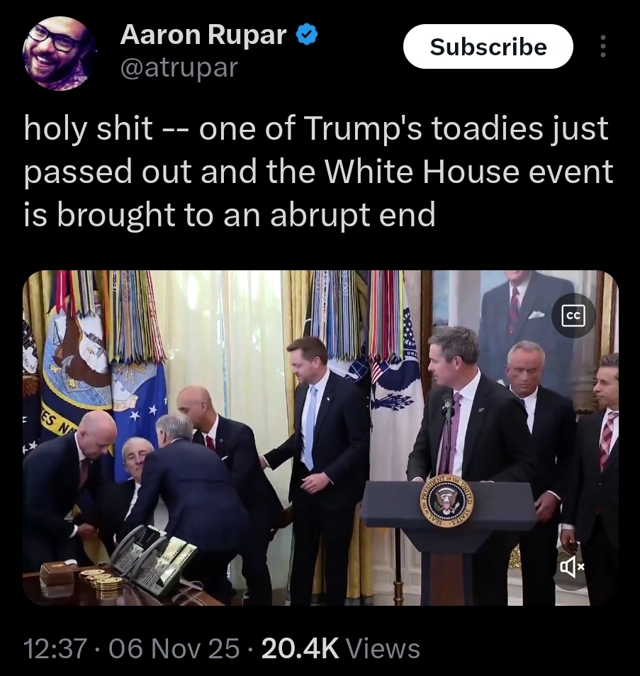 He fell during a perfectly run press conference. We had camera shutters like you wouldn’t believe. Millions and millions of pictures being taken. Ol Bobblin Bob took the spotlight from DJT. What are you bobbing for, Bob? Apples? Unbelievable…