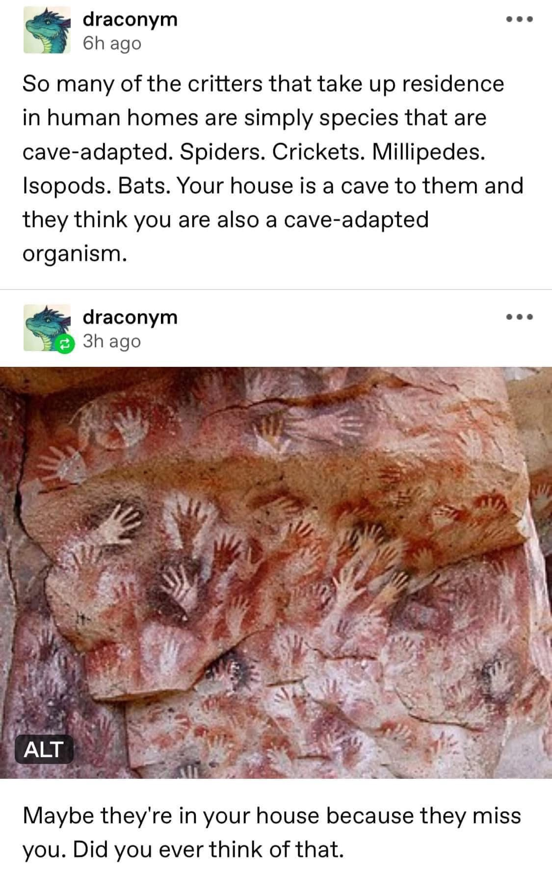minus-squareDeceptichum@quokk.aulinkfedilinkEnglisharrow-up4·2 天前I wouldn’t go so far as to make such absolute claims. We have many historic and contemporary instances of peoples living in caves, so it’s certainly achievable.