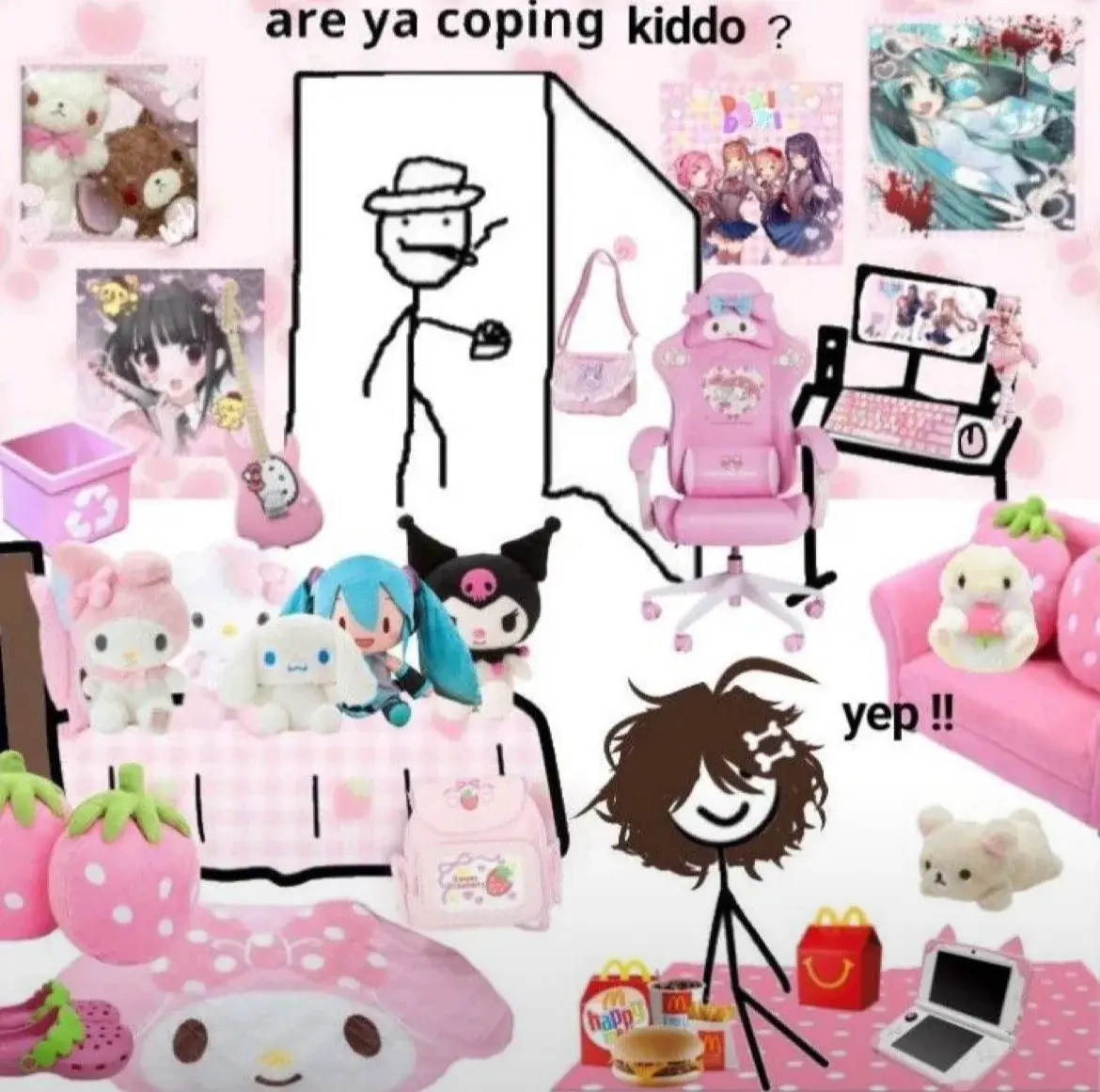 This is peak coping, not collapse. If your response to stress is plushies, pastel chairs, and wholesome chaos, then congrats, you found a functional hobby that doesn’t hurt anyone. Laugh at it all you want, but it’s clearly doing the job.
