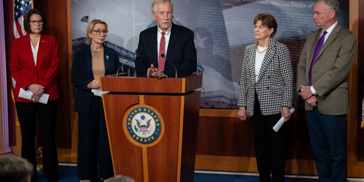 Technically seven Democrats and one Independent, since Angus King is among those who caved