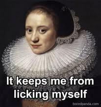 This seems like a ‘good thoughts only’ chastity collar. You cannot look down to feel sad and cannot be tempted by others by what you can’t see?