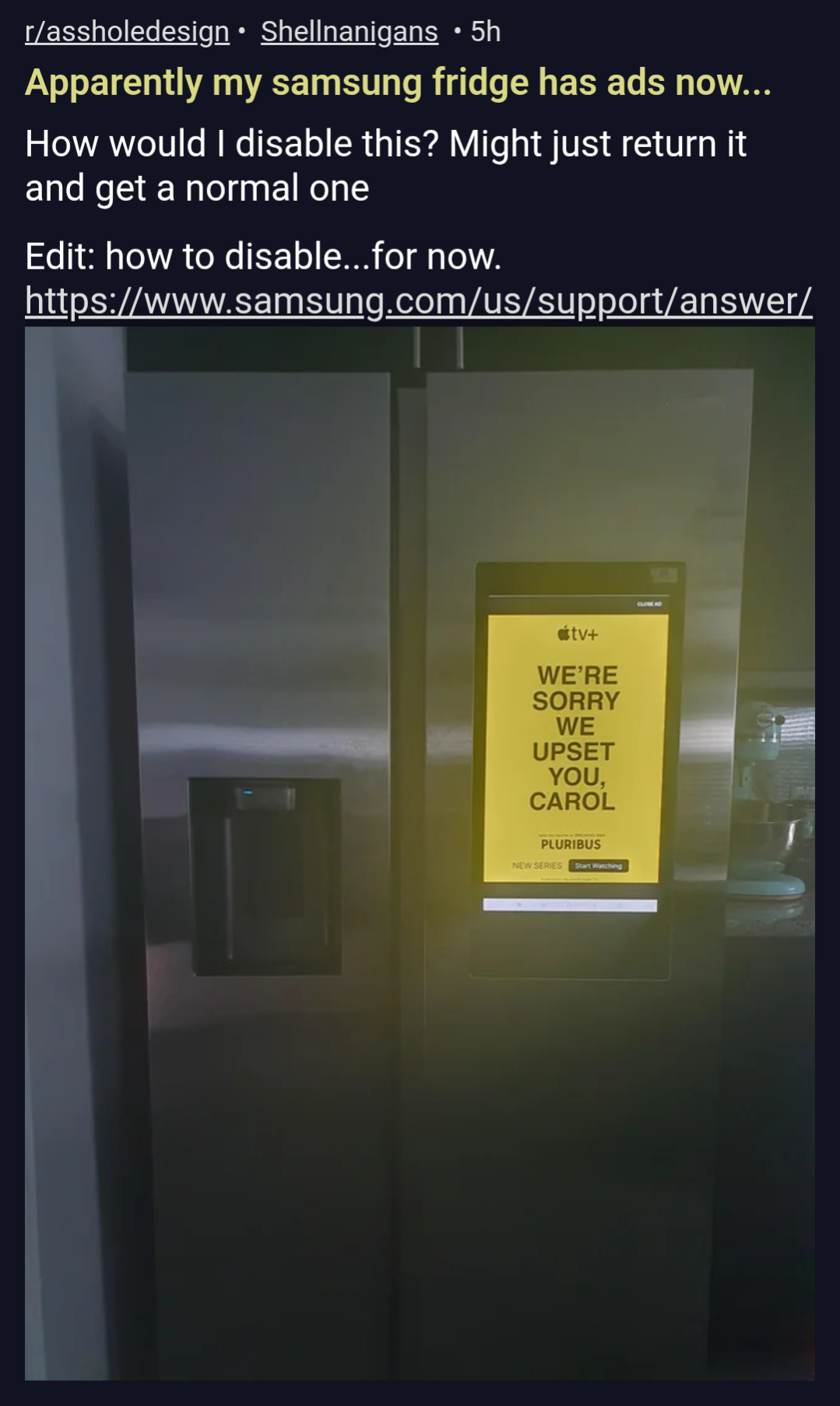 ByteOnBikes@discuss.online to A Boring Dystopia@lemmy.world · 8 days agoRefrigerator ads are finally here!discuss.onlineimagemessage-square316fedilinkarrow-up1827arrow-down17